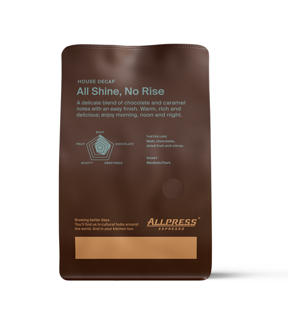 With little and often in mind, the Allpress Airtight Canister holds 300g of fresh beans or ground coffee and is made to keep your coffee fresh for longer. Designed with an airtight lid made to seal in and protect the flavour of your coffee and decorated with our iconic Allpress brown colour-way and branding, this Airtight coffee canister is a stylish and useful addition to the pantry.